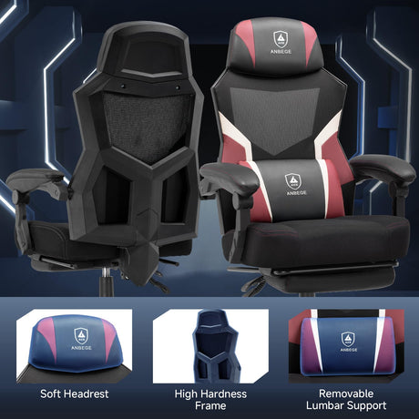 Ergonomic Mesh Gaming Chair with Footrest - High-Back Reclining Office Chair