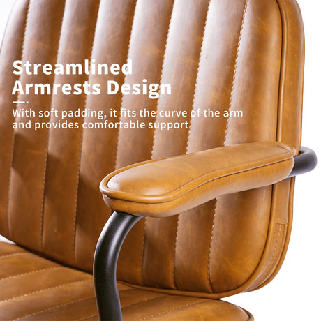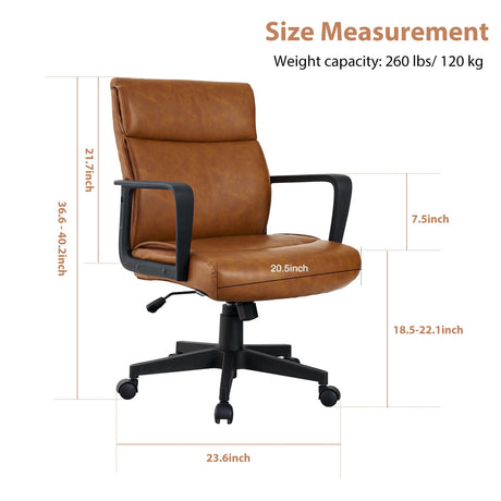 Ergonomic Mid Back Executive Chair - Brown Leather Office Chair with Adjustable Height