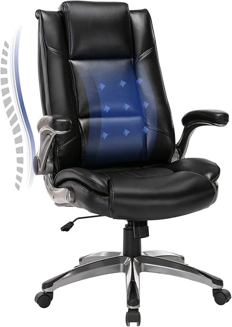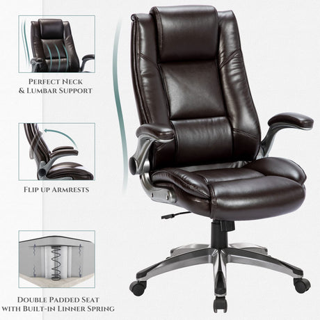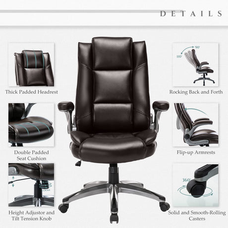 Leather Executive Office Chair - High Back Ergonomic Desk Chair with Flip-Up Arms