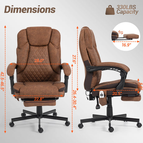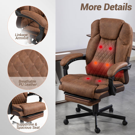 Massage Office Chair with Footrest - Ergonomic Executive Desk Chair with Heat & Vibration