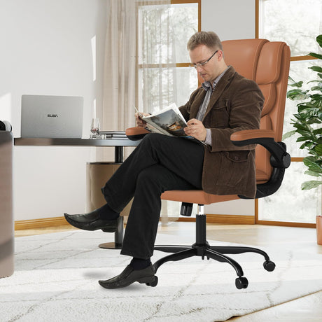 Executive Office Chair with Flip-Up Armrests - Ergonomic Mid-Back Leather Desk Chair
