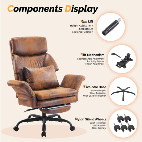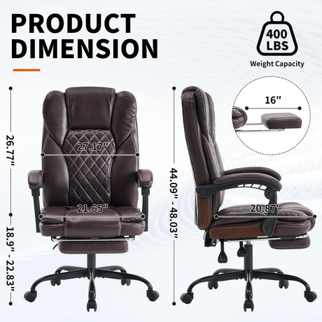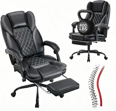 Big and Tall Executive Office Chair with Footrest - 400lbs Capacity