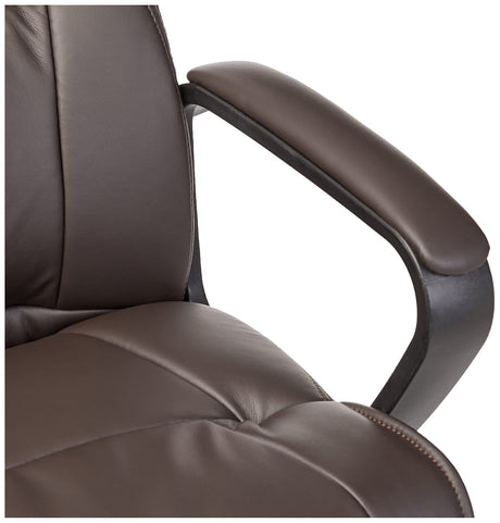Mid-Back Office Task Chair with Padded Armrests - Dark Brown Faux Leather
