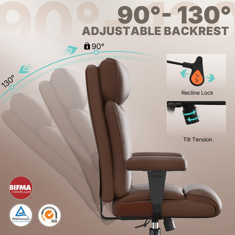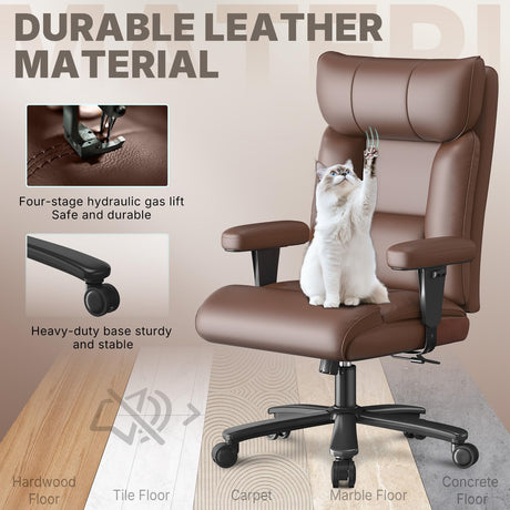 Heavy Duty Leather Office Chair - Mid Century Modern Desk Chair with Lumbar Support, 450LBS
