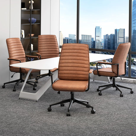 Mid Back Office Chair - PU Leather Executive Desk Chair with Wheels