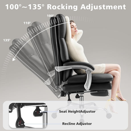 500 LBS Big and Tall Office Chair with Footrest - High Back Reclining Ergonomic Desk Chair