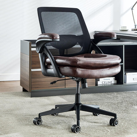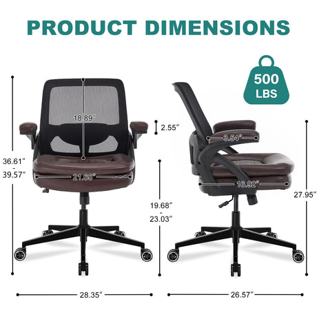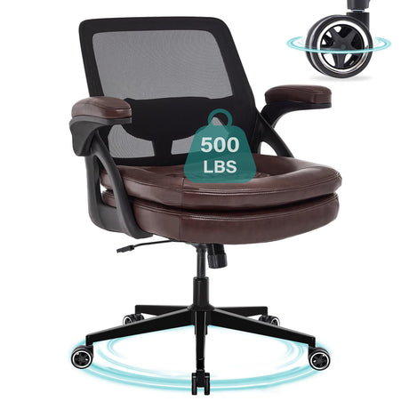 Executive Office Chair with Flip-Up Armrests - Ergonomic Mid-Back Leather Desk Chair