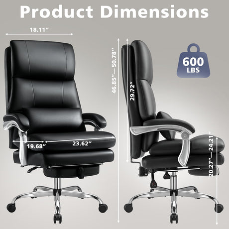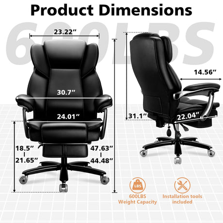 Heavy Duty Office Chair 600lbs - Big and Tall Executive Desk Chair with Footrest