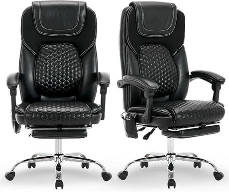 Massage Office Chair with Footrest - Ergonomic Executive Desk Chair with Heat & Vibration