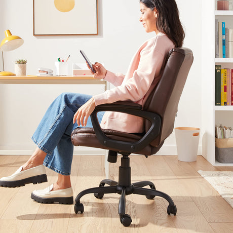 Mid-Back Office Task Chair with Padded Armrests - Dark Brown Faux Leather