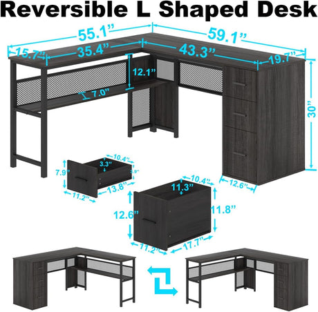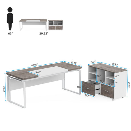 L-Shaped Desk with Drawers, 63" Office Desk with File Cabinet