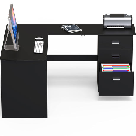 L-Shaped Home Office Wood Corner Desk with 3 Drawers