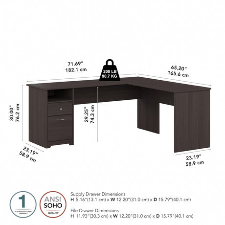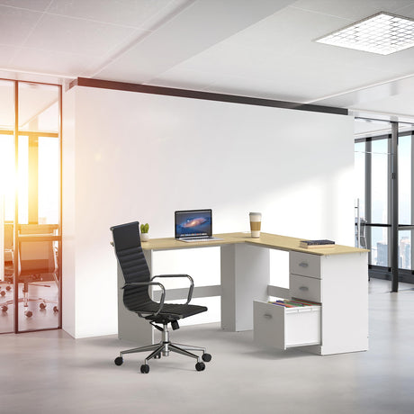 L-Shape Home Office Executive Desk with Large Drawers, Letter Size Hanging File Drawer