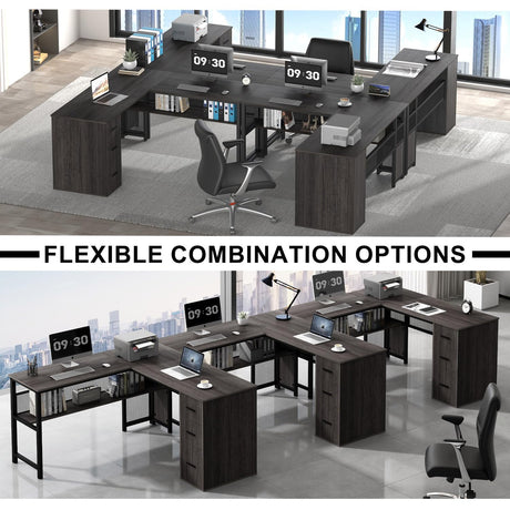 L Shaped Desk with Storage Cabinets, Reversible Home Office Corner Desk