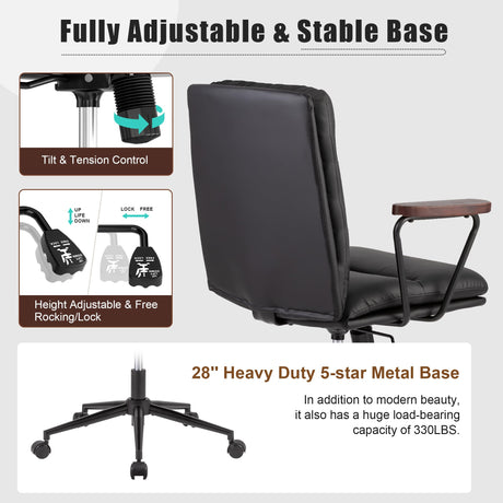Leather Office Chair, Modern Desk Chair with Removable Wooden Armrests