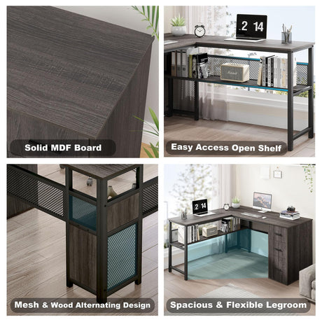 L-Shaped Desk with Shelves, Computer Corner Desk, Home Office Writing Workstation