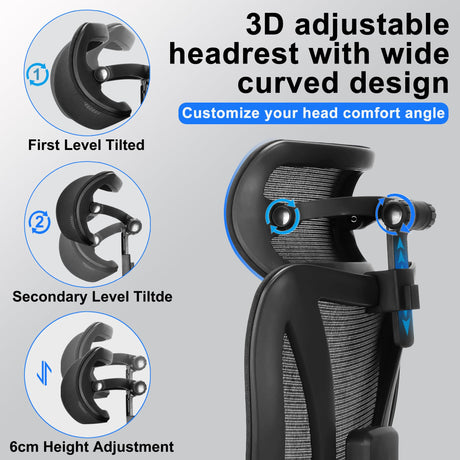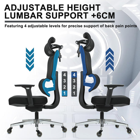 Ergonomic Office Chair with Adjustable Lumbar Support, Armrests and Headrest, High