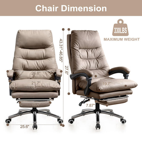 High Back Office Chair with Lumbar Support and Footrest, Leather Executive Computer