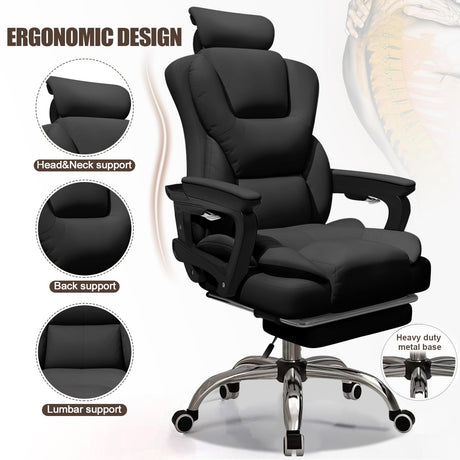Ergonomic Executive Office Chair with Retracable Footreat - High Back Home Office Chair