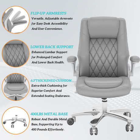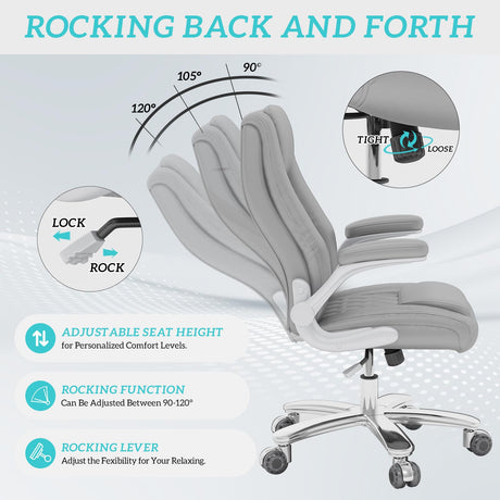 Office Chair, Ergonomic Desk Chair with Flip-up Armrests, PU Leather Computer Chair