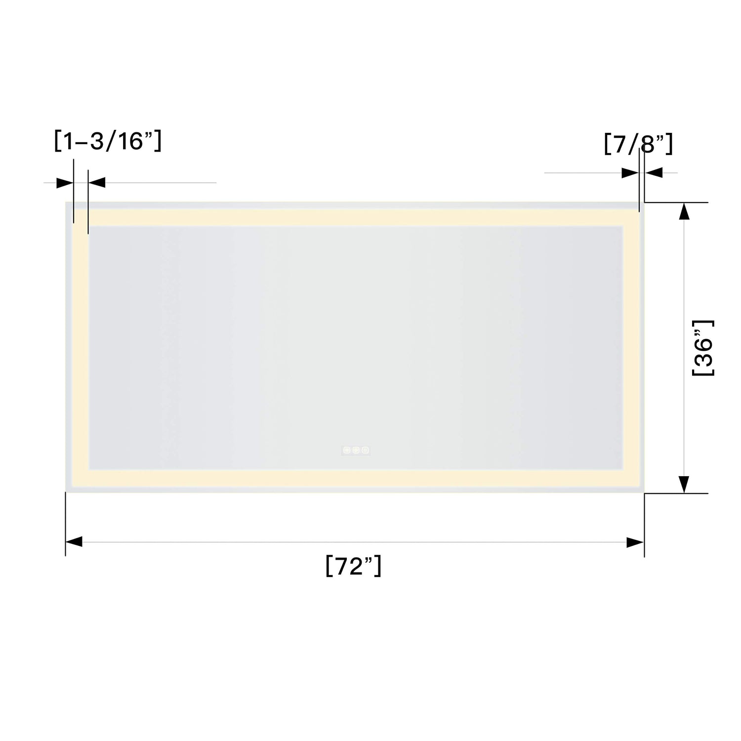 B&C 72"x36" Lighted Bathroom Mirror Wall Mounted|High Lumen LED Lights with CRI>95| Plug/Wall Switch Ready|Vertical or Horizontal|Defogger and Dimmer with Memory|Touch Switch|Non-Copper Silver Backed