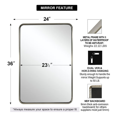 LED Bathroom Mirror with Lights, Rounded Rectangle Silver Frame Embedded
