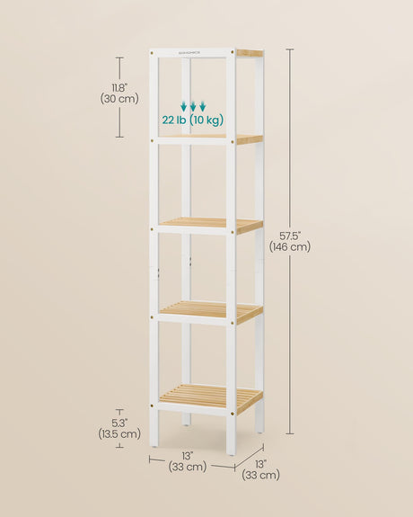 5-Tier Bamboo Bathroom Shelf, Narrow Shelving Unit