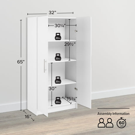 Bush Furniture Key West Bathroom Storage Cabinet with Doors in Pure White Oak
