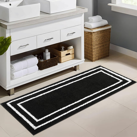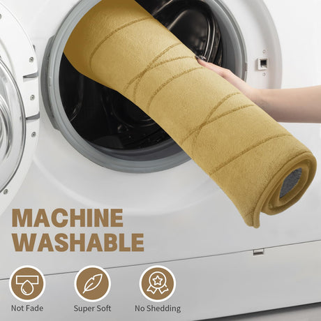 Long Gold White Marble Bath Mat,Non Slip Super Absorbent Quick Drying Bathroom Runner Rug