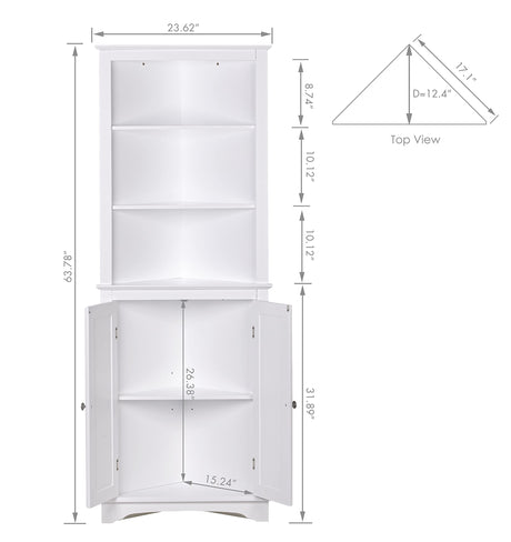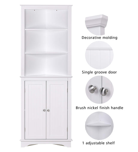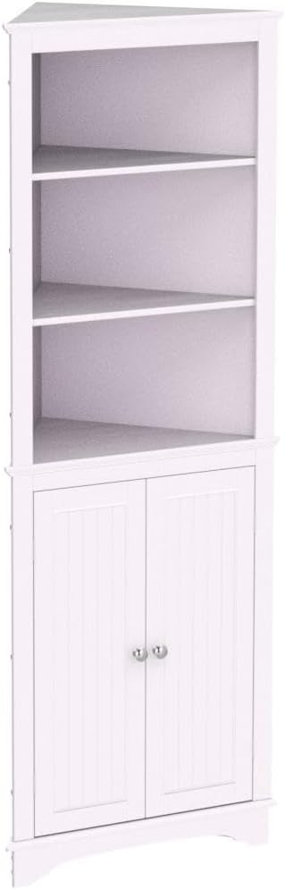 Tall Corner Cabinet with Doors and Shelves, Freestanding Corner Storage Cabinet for Bathroom,