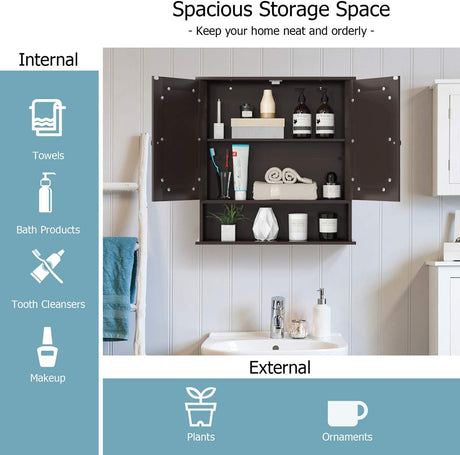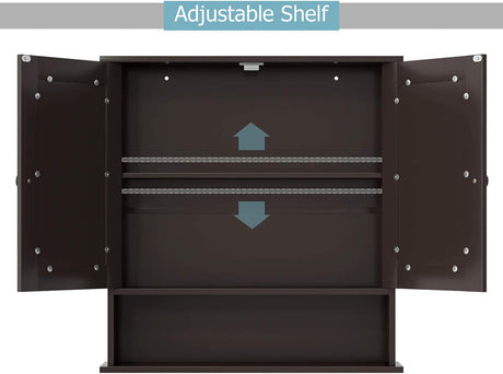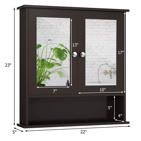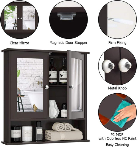 Bathroom Cabinet Wall Mounted with Double Mirror Doors, Wood Hanging Cabinet with Doors and Shelves,