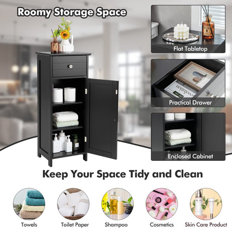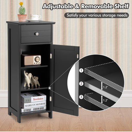 Bathroom Floor Cabinet, Freestanding Storage Cabinet with Adjustable Shelf and Drawer