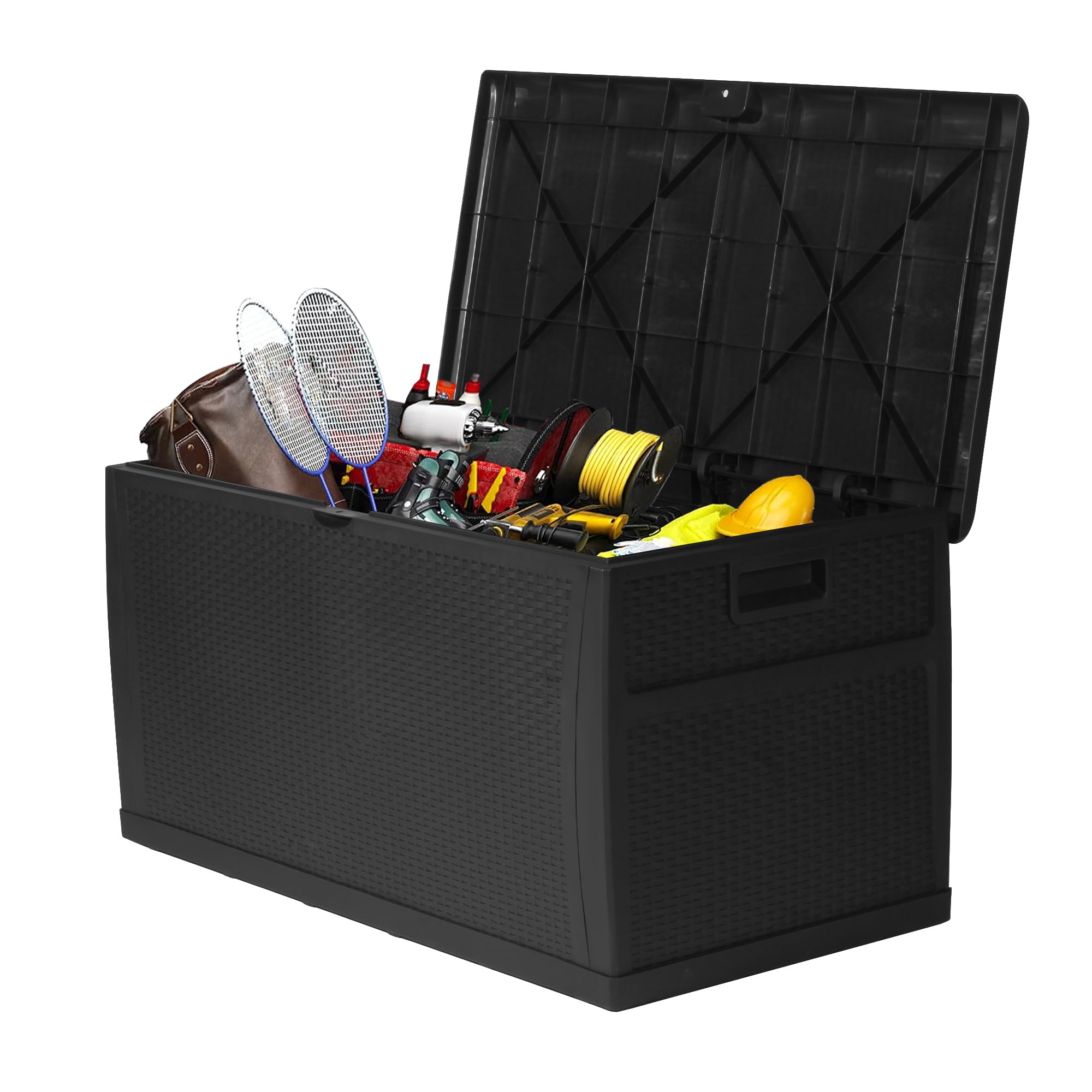 178 Gallon Outdoor Storage Box, Handle Large Portable Wicker Rattan Deck Box for Patio