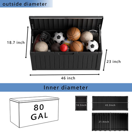 80 gallon deck box,Resin material outdoor storage box