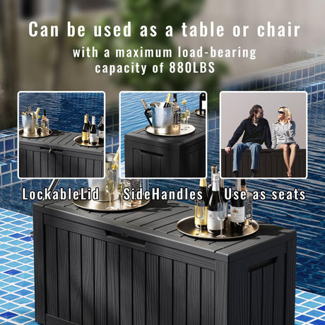 Deck box,30 gallon indoor and outdoor storage box, Waterproof and sun-resistant resin
