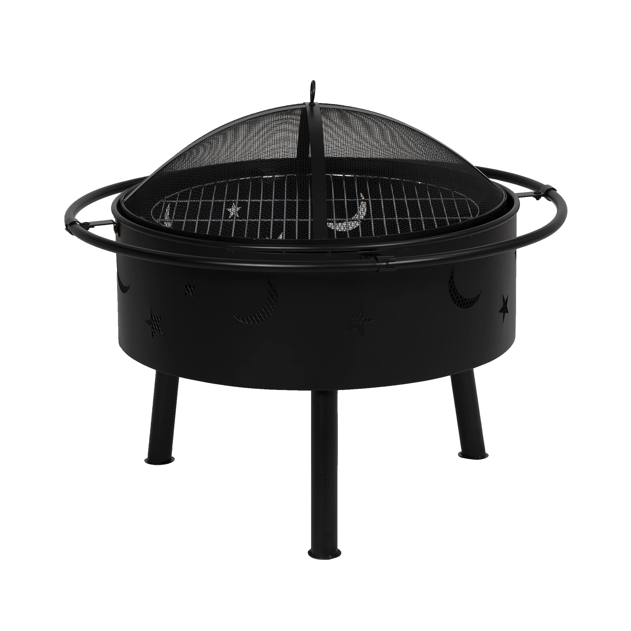 Large FirePit Bowl Star & Moon Bonfire Round Steel Wood Burning Heavy Duty Cooking