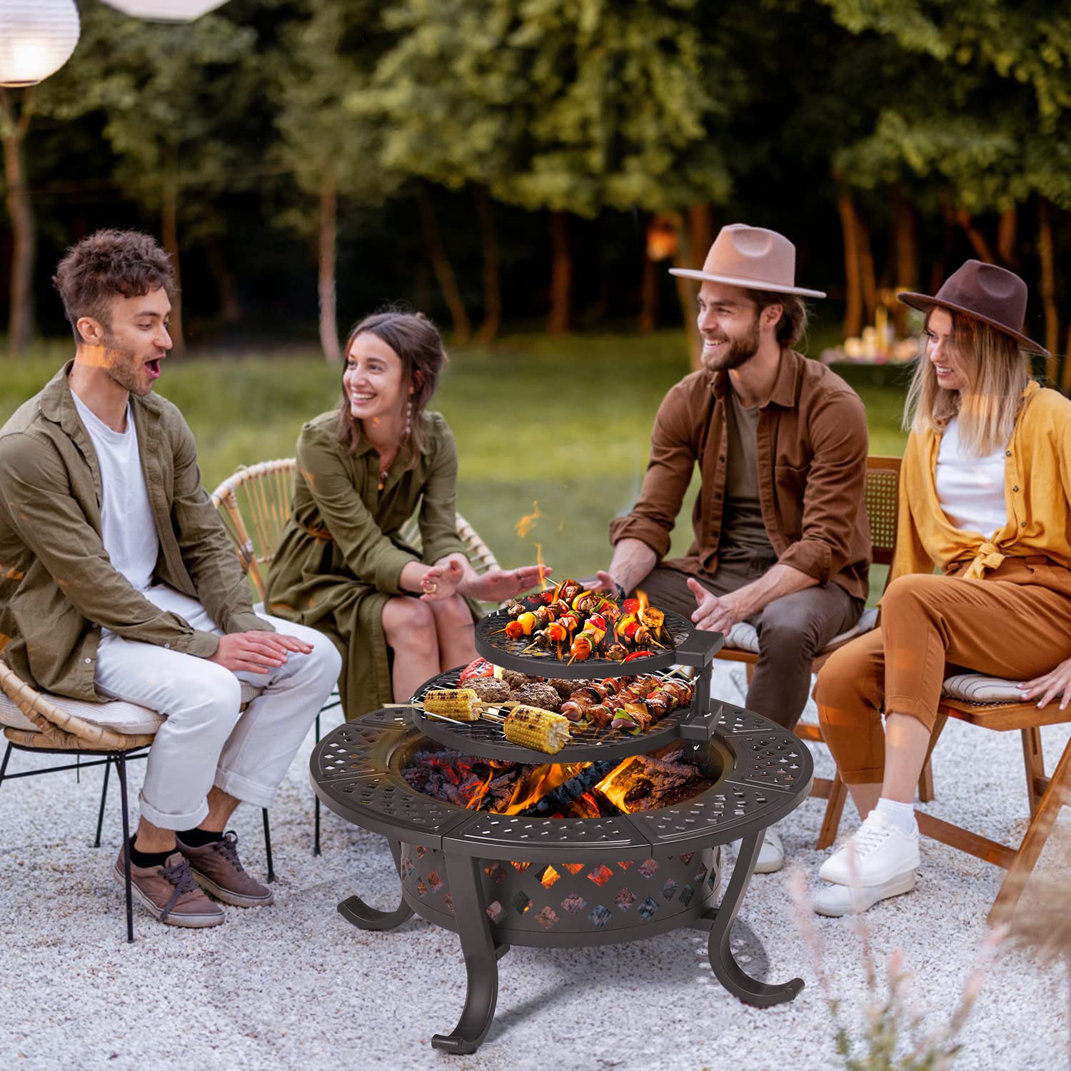 Mountain Valley 47" Outdoor Fire Pit with Adjustable Grill,2-in-1 Metal Outdoor Fireplaces