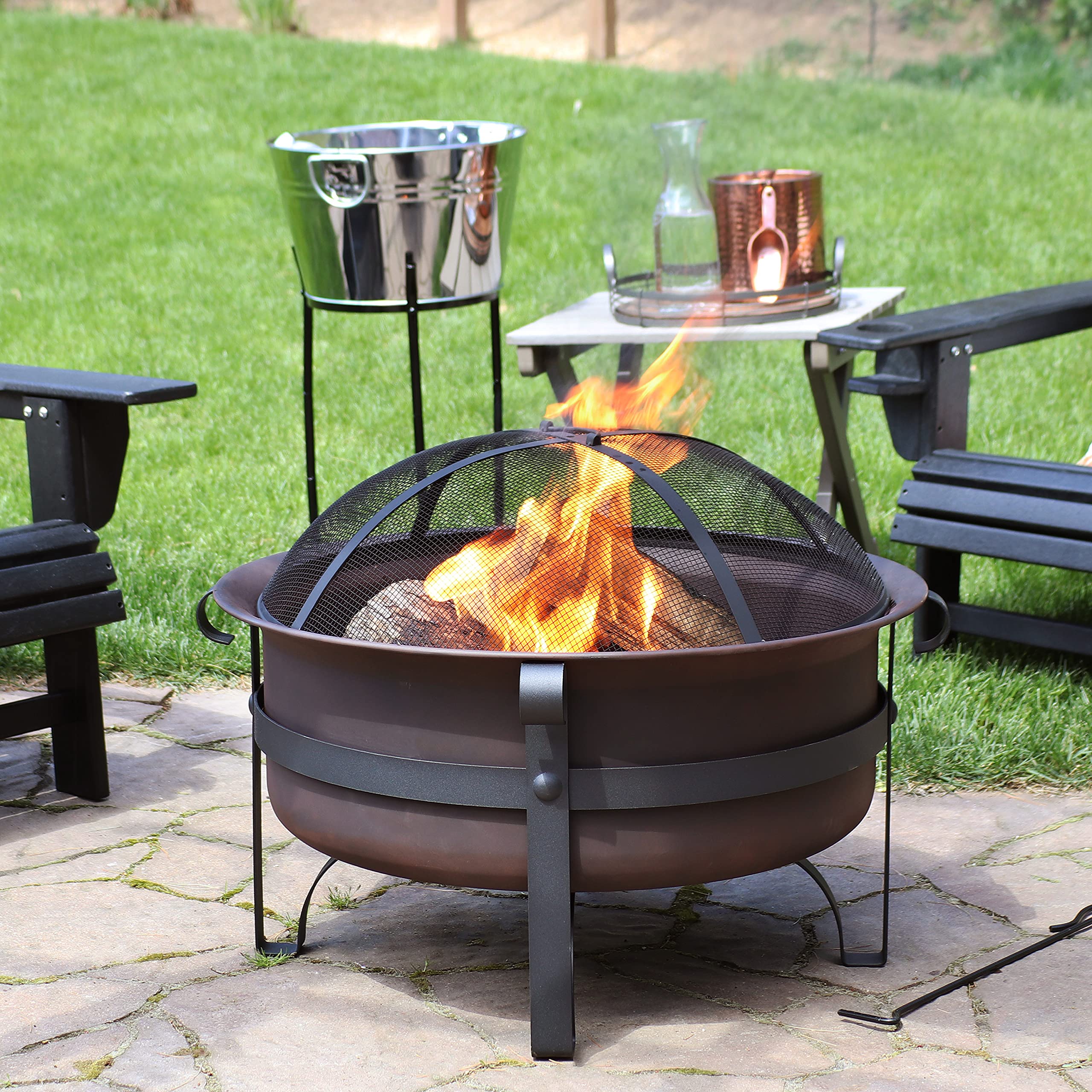 29-Inch Wood-Burning Outdoor Fire Pit - Bronze Cauldron Wood Fire Pit