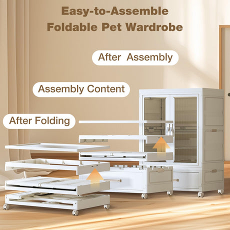 Pet Storage Wardrobe with Wheels & Hanging Rods