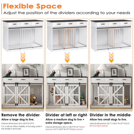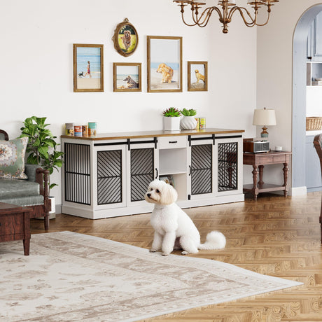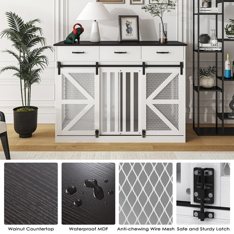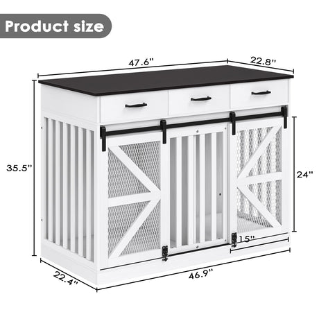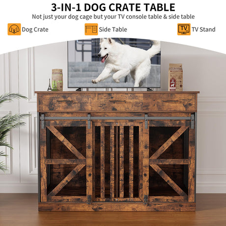 Farmhouse Dog Crate Furniture with Storage Drawers - Large Wooden Kennel & TV Stand