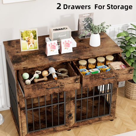 43.3" Large Wooden Dog Crate Furniture with Storage Drawers