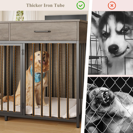 48 Inch Large Dog Crate Furniture with Storage Drawers