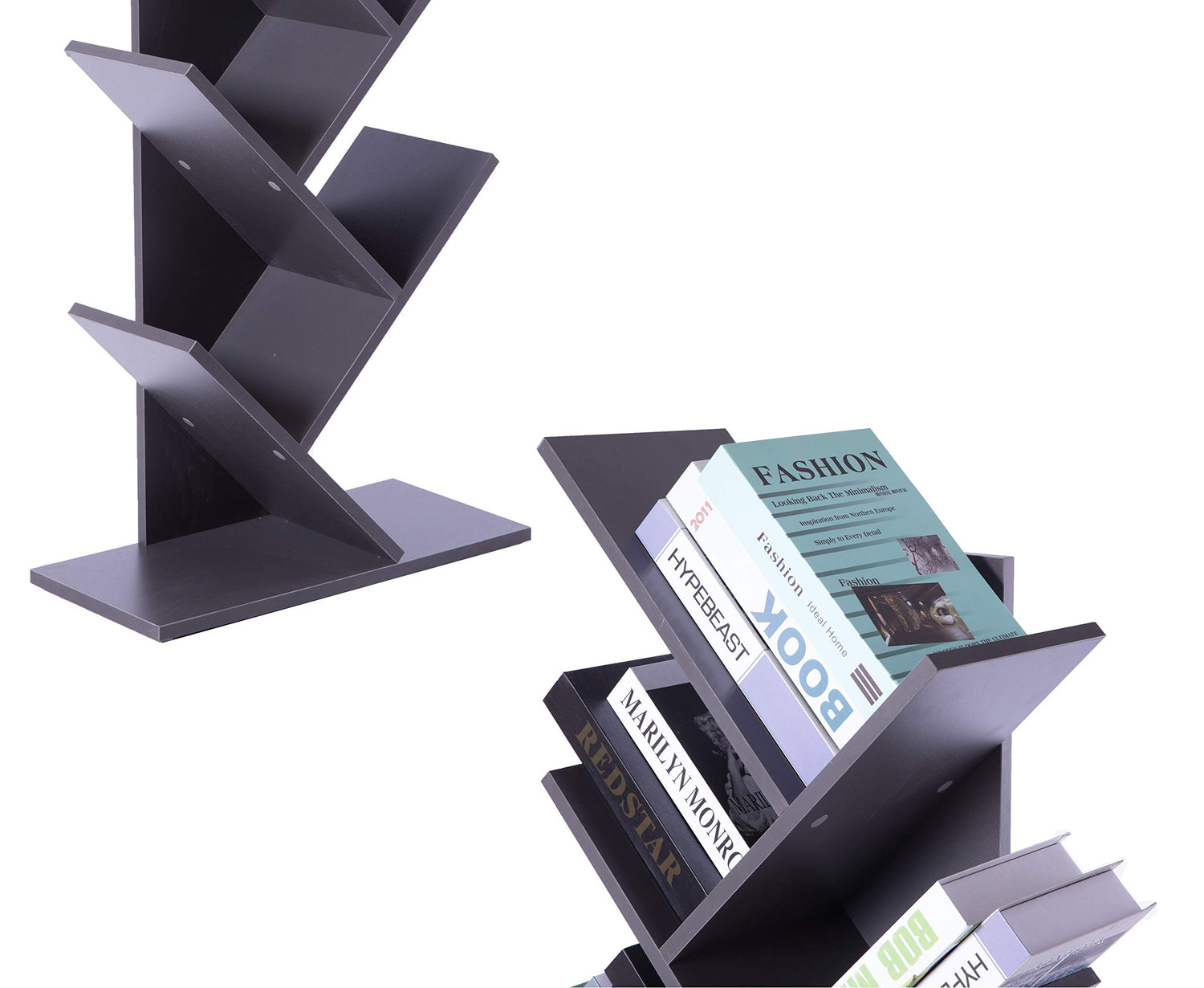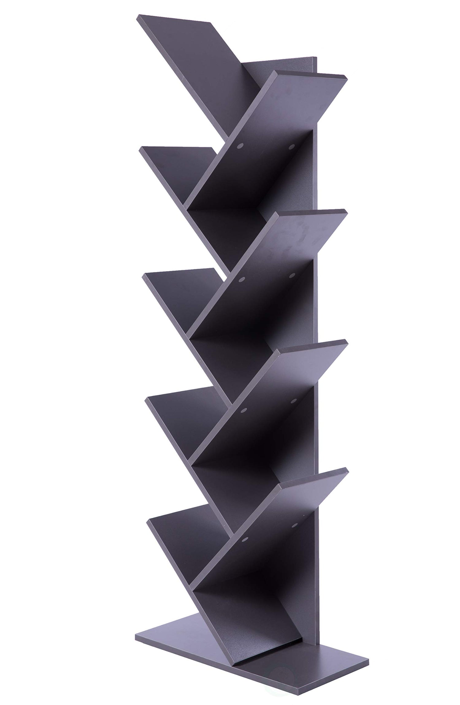 Basicwise Wooden 9-Shelf Tree Magazine CD Storage Bookcase, Gray