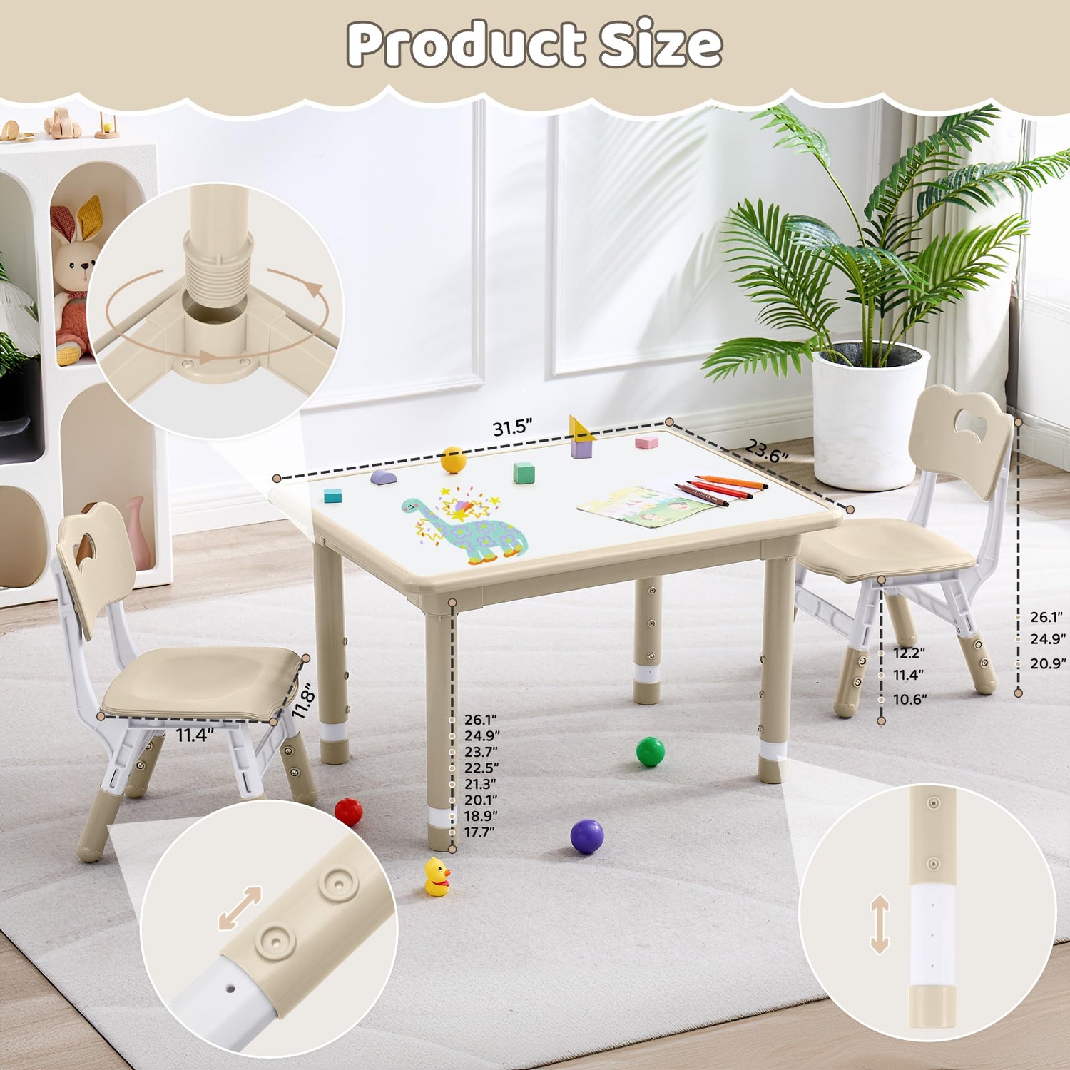 Kids Table and 2 Chairs Set, Height Adjustable (17.7"-26.1") Toddler Table and Chair Set