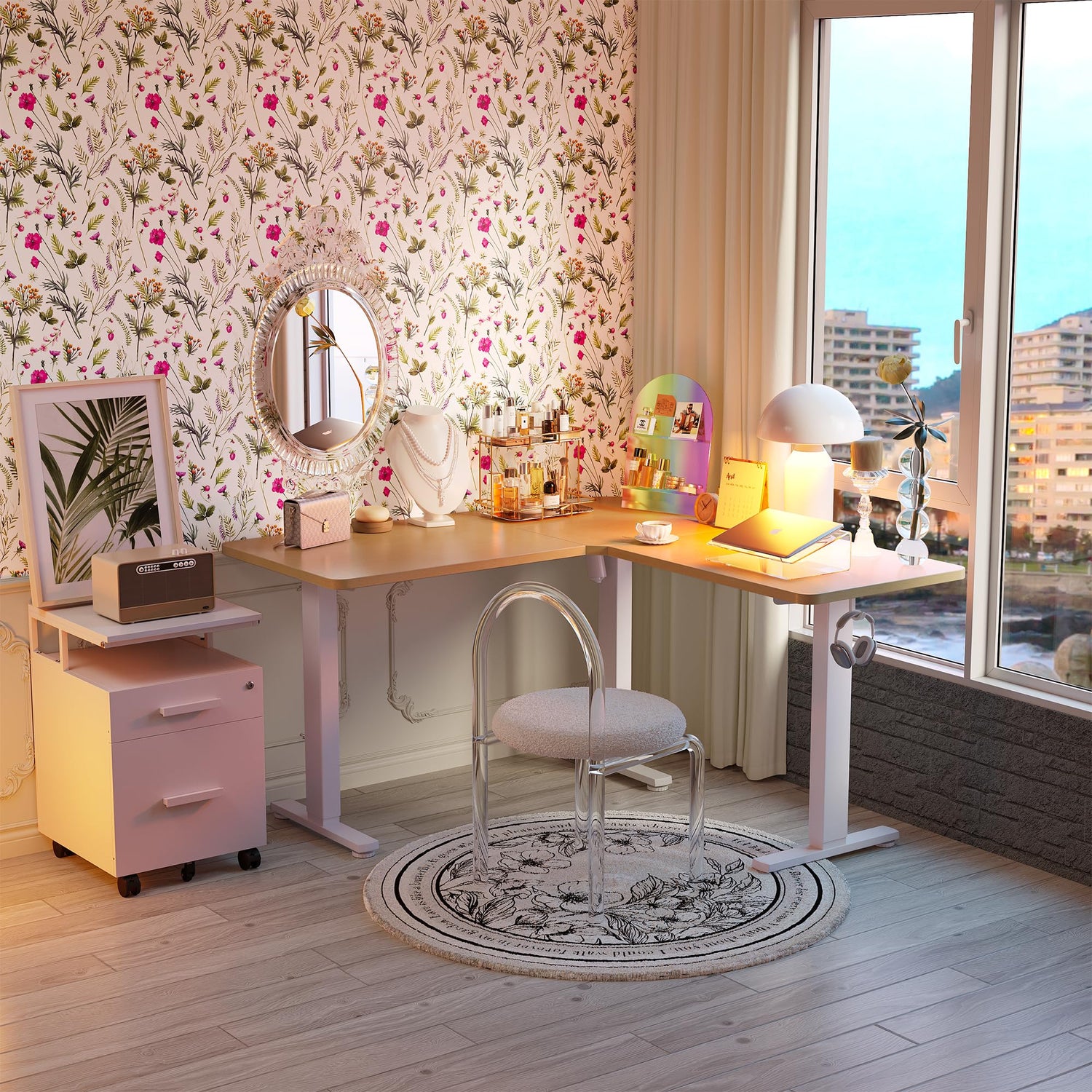 - Fezibo L shape standing desk has 2 preset memory buttons to customize your desired heights from 27.5" to 46.8" with collision-avoiding feature, smooth convert sitting to standing.