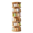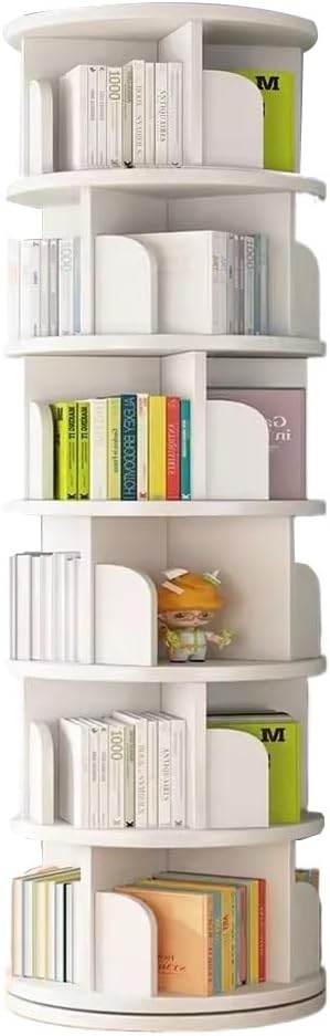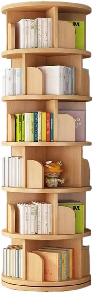 6 Tier Rotating Bookcase,360°Display Wood Round Bookshelf, Corner Bookshelf for Small