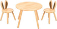 Rubberwood Kids Table and Chair Set, Natural Wood, Easy to Clean, Toddler Table with 2 Rabbir Chairs for Bedroom