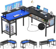 Reversible L Shaped Desk with Power Outlets and Smart LED Light, 55 Inch Computer Office Desk