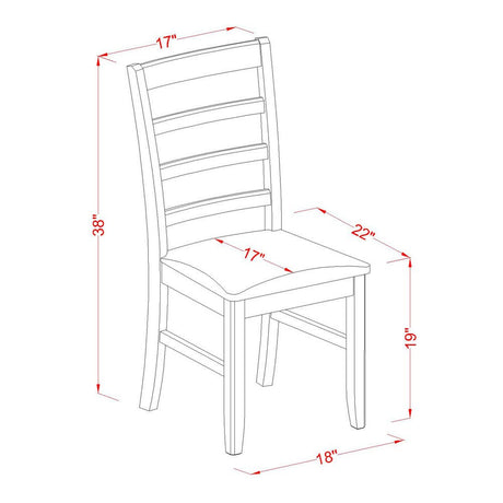 5 Piece Dining Table Set, 4 Chairs, Slatted Backs, Solid Wood, Walnut Brown