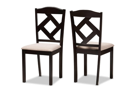 Ruth Dining Set and Dining Set Beige Fabric Upholstered and Dark Brown Finished 5-Piece